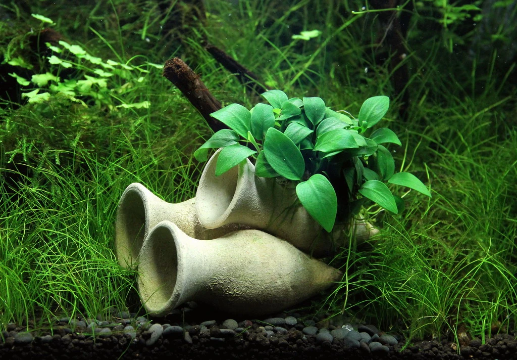 Dennerle Garnelen Amphore mit Anubias ‚Petite‘ oder ‚Bonsai‘ / Kleinstes Zwergspeerblatt