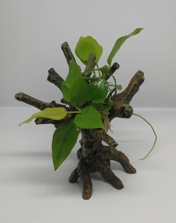 Goldenes Speerblatt-Bäumchen Mit Baumkrone / Urwaldbaum KLEIN Mit Anubia Nana GOLD-BLATT