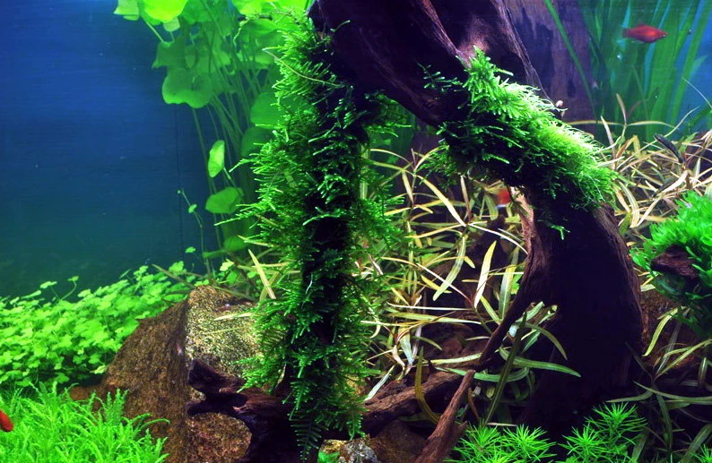 Spiky-Moos ist ein seltenes Moos aus Asien und gehört zu den Aufwuchsmoosen, welche kleine Rhizome bilden und nach einiger Zeit selbstständig am Untergrund haften. Stachelmoos lässt sich am besten als großer Bruder des Christmas-Mooses bezeichnen. Spiky ist gröber und größer mit tiefgrünen, verzweigten Trieben. Spiky macht sich am besten an senkrechten Flächen, wo die verzweigten Triebe voll zur Geltung kommen. Das Moos wächst schnell und braucht etwas Licht, um gut zu gedeihen. Es wird dazu nur einmal mit Schnur, Garn oder Netz aufgebunden und bedarf keiner weiteren großartigen Pflege. Unter Wasser sind die leuchtend hellgrünen Triebspitzen besonders attraktiv. Das Stackelmoos liebt wie viele andere Moosarten frisches Wasser.