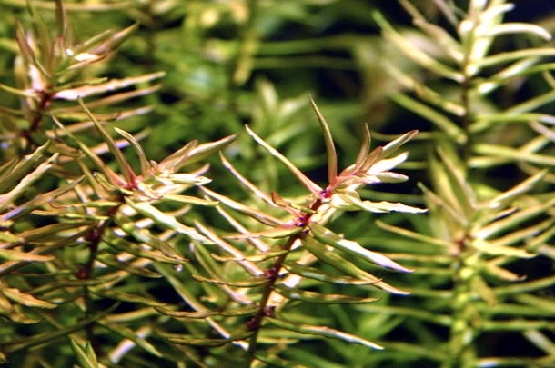 Die nordamerikanische Didiplis diandra auch Wasserhecke oder Sumpfquendel genannt ist eine gute Mittelgrundpflanze, die in kleinen Gruppen gepflanzt werden sollte. Bei guten Lichtbedingungen entwickeln sich rote Sproßspitzen an den 10-15 cm langen Stengeln, die einen schönen Kontrast zu den grünen Pflanzen im Aquarium bilden. Diese anspruchsvolle Pflanze benötigt viel Licht und bevorzugt weiches Wasser. Eine CO2-Zugabe fördert das Wachstum erheblich. Ist auch unter dem Namen Peplis diandra bekannt.