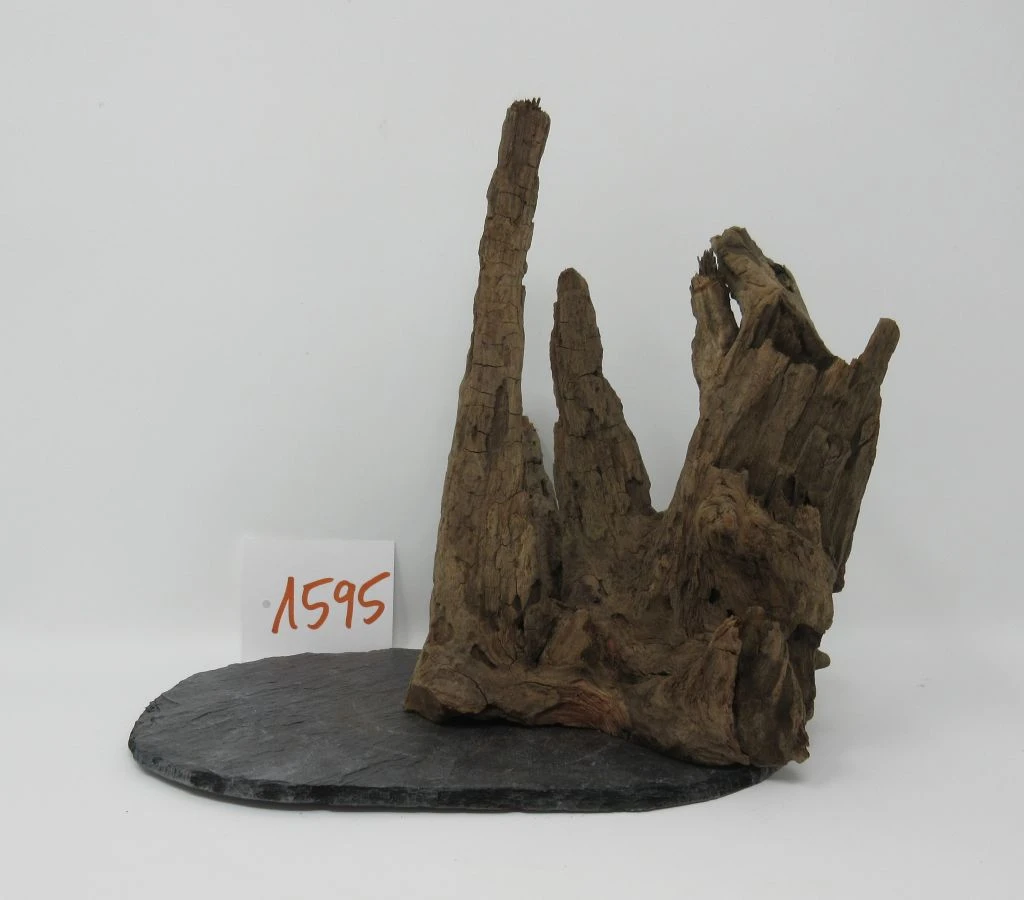 Die Größenangaben (incl. Schieferplatte) sind ungefähre Maße. Je nachdem wie man die Wurzel dreht, ergeben sich leicht abweichende Abmaße.